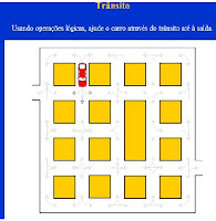 Usando operações lógicas, ajude o carro através do trânsito até à saída.